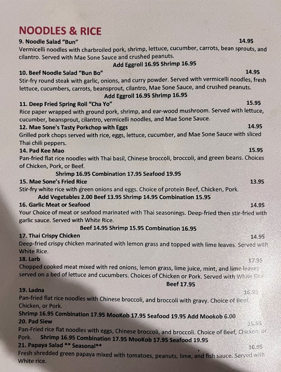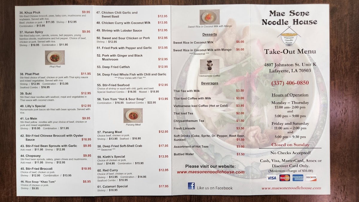 Welcome to Mae Sone Noodle House, a hidden gem located at 4807 Johnston St, Lafayette, LA. This charming eatery offers a diverse menu that truly shines with its handmade delights. Customers rave about the egg rolls, described as the best they've ever tasted, and the impressive variety of dishes, including pork wontons and chicken fried rice. Each dish reflects a passion for fresh ingredients and authentic flavors, elevating Asian cuisine to new heights in Lafayette.